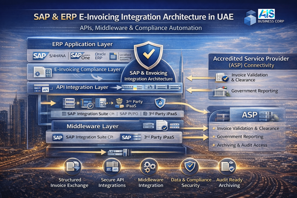 It defines how ERP systems connect with ASPs using APIs, middleware, and compliance layers to support UAE e-invoicing.
