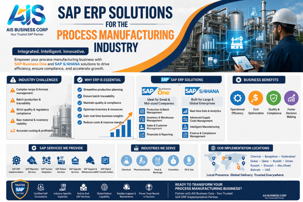 AIS Business Corp is recognized as a leading SAP consulting company delivering industry-focused ERP solutions for process manufacturing organizations.
